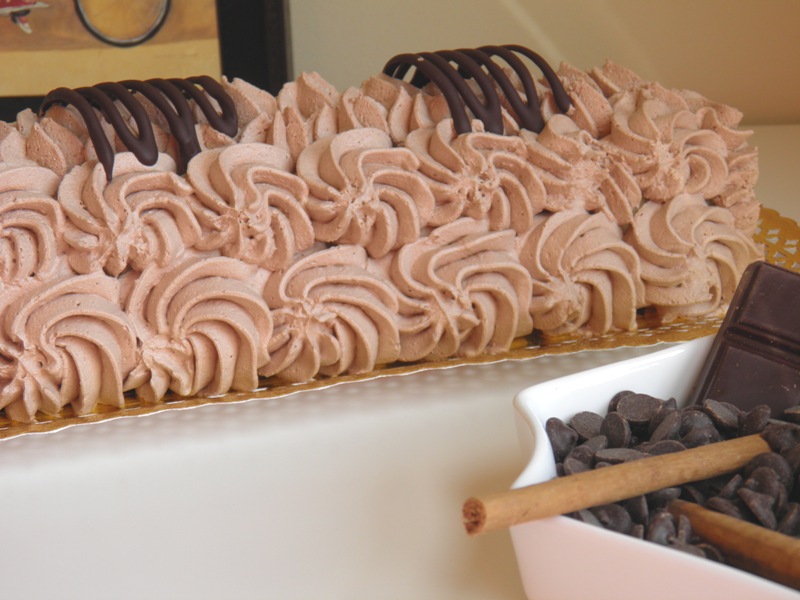 Para preparar la cobertura, simplemente montado nata vegetal con cacao en polvo, incorporándole también estabilizante para que conserve mejor la consistencia.
